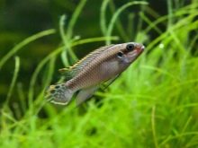 - Kribensis - Die häufigste Art mit spitzen Flossen, grauer Grundfarbe und Kirschbauch.