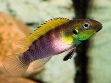 - Kamerun - Ein Papagei, der in einer lila Grundfarbe bemalt ist und dunkle Streifen sowie einen türkisfarbenen Bauch hat. Kennzeichen des Männchens sind lila Flossen und ein gelb-schwarzer Schwanz.