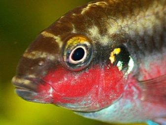 - Rote Wange - eine seltene Art, die nicht alle Aquarianer haben. Die Hauptunterschiede sind das Vorhandensein von Rot im Bereich der Kiemen, das allmählich auf den Bauch übergeht. Das Farbschema des Rückens ist dunkler als bei anderen Arten.