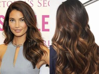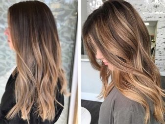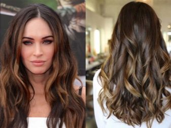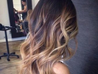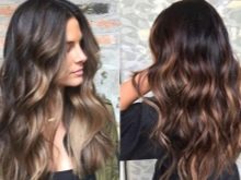 Braunes Haar, das mit der Balayazh-Technik gefärbt wurde, sieht ebenfalls wunderschön aus. Um die Enden in diesem Fall hervorzuheben, werden normalerweise Karamell- und Goldtöne verwendet. In diesem Fall können die Schlösser auf diese Weise sowohl im gesamten Kopf als auch nur im Gesicht gefärbt werden.