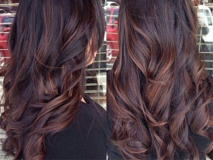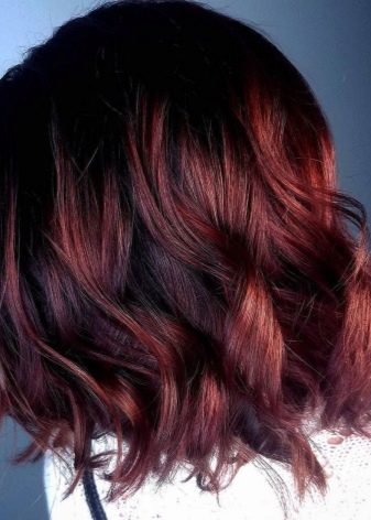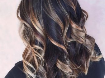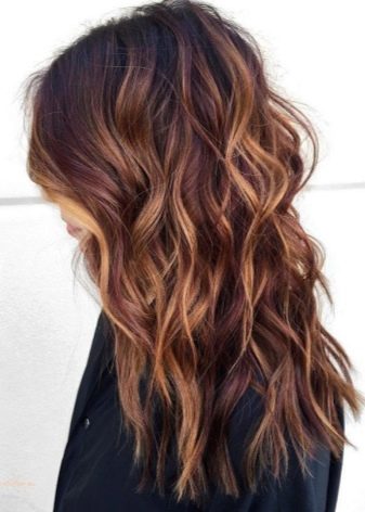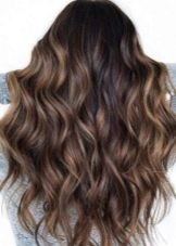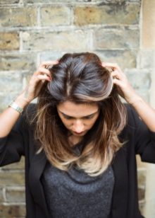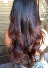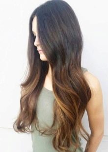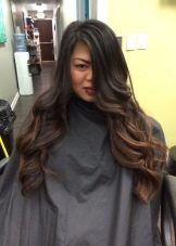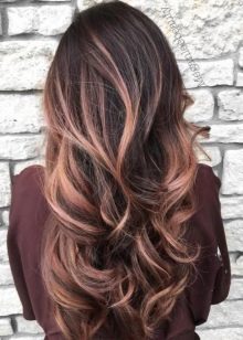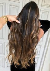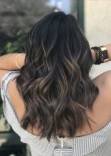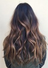 Balayazh über die Besitzer dunkler Locken führt verschiedene grundlegende Techniken aus - Farbverläufe zwischen den verwendeten Tönen kann weich, verschwommen oder ziemlich scharf sein und prägnant. Farbmischungen können sowohl im gesamten Mopp als auch in den einzelnen Bereichen angewendet werden.