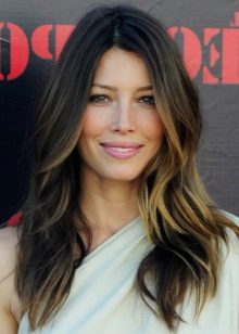 - Mittel - In diesem Fall werden mehrere kleine Strähnen aus dem gesamten Haarstapel ausgewählt, die mit Aufhellungsmitteln bedeckt sind, und anschließend wird eine getönte Zusammensetzung aufgetragen. Das Ergebnis einer solchen Färbung sieht eher sanft und so natürlich wie möglich aus. Die Strähnen werden zufällig ausgewählt, so dass das Haar in der heißen Sonne ein wenig verblasst aussieht.