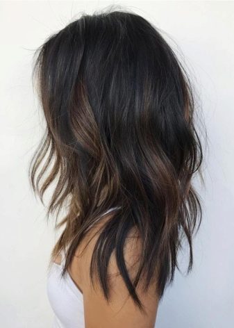 - Balayazh auf schwarzen Strähnen erfordert ein gutes Styling, da das Haar sonst unangenehm und gepflegt aussehen kann.
