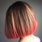 Für den Fall, dass Sie ein längliches Caret mit Pony haben, können Sie Ihr Haar willkürlich nur im unteren Teil färben, da es für die Pony normalerweise eine natürliche Farbe hat. Es wird nicht empfohlen, einen kurzen Knall auf dunklem Haar zu färben. Dies ist nur möglich, wenn es asymmetrisch oder lang ist. Malen Sie dazu für jedes Haar separat mit einem dünnen Pinsel. Die Pony werden auch eingefärbt, wenn graues Haar vorhanden ist, während die unteren Strähnen dunkel und die Pony hell werden.