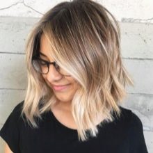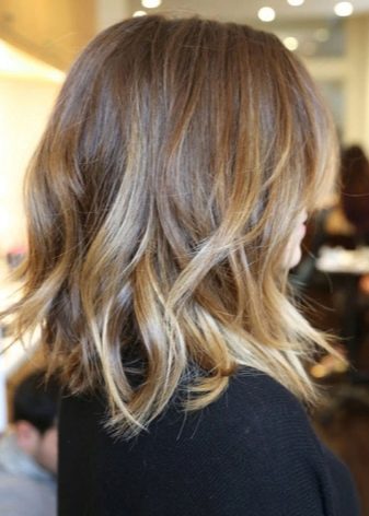 In diesem Fall kann das braune Haar auf diese Weise gefärbt werden, wenn die Dame ein abgestuftes oder schräges Quadrat hat: Einige Strähnen werden nur an den Spitzen und der Rest auf der gesamten Länge heller. Ungewöhnlich sieht auch aus wie ein sanfter Übergang von einem Blonden zu einem schneebedeckten Blonden. Dank der Bemalung verschiedener Stranghöhen mit mehreren Farben erhalten Sie interessante Farbtöne, die der Sonnenblendung ähneln. Darüber hinaus kann braunes Haar durch grobe Locken benachbarter Farbtöne unterschieden werden. Ein solcher Balayazh wird aus den Wurzeln selbst hergestellt, ist komplex, sieht aber unglaublich schön aus.