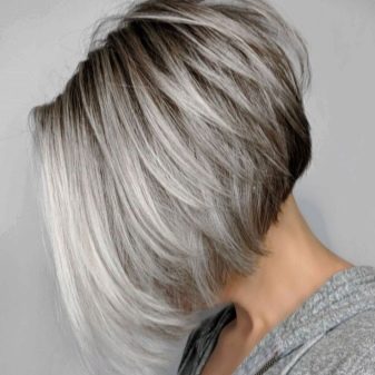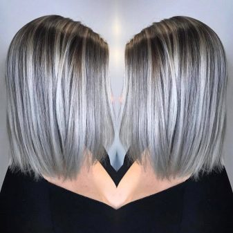 Einige Damen sind mit dem Problem des Aussehens von grauem Haar konfrontiert, das schwer zu übermalen ist. In diesem Fall empfehlen Experten die Verwendung der Balayazh-Technik, bei der graue Stränge mit gemalten gemischt werden und unsichtbar werden. Hierfür eignen sich Flieder-, Platin-, Silber- und Purpurtöne.