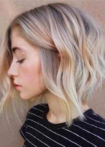 Balayazh ist eine beliebte Art der Hervorhebung, die eine harmonische Farbgebung bietet und auf einem Bob-Haarschnitt am besten aussieht. Die Haarfärbung auf diese Weise erfolgt nach einer speziellen Technologie, wobei die Art des Aussehens und die Gesichtsform des Mädchens berücksichtigt werden. Am häufigsten wird Balayazh auf einem länglichen Platz mit einem Knall verwendet. Ein kurzes Quadrat in diesem Design können sich jedoch Damen leisten, deren Gesichtszüge spitz sind, da ein Balayazh Formen visuell abrunden kann. Mollige Schönheiten müssen ihre Haare von den Wurzeln färben, damit ihr Gesicht gedehnt wird und das Aussehen mit Weiblichkeit aufgefüllt wird.