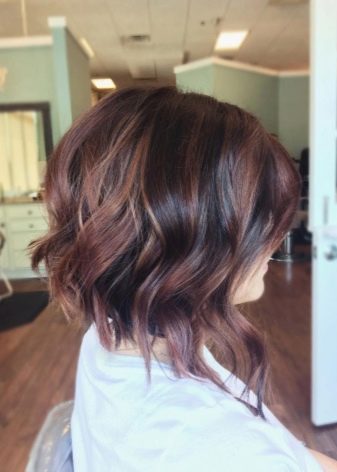Braunes Haar ist am häufigsten anzutreffen und eignet sich gut zum Färben mit Balayazh-Technik unter Verwendung von Fliederfarben. Gold-, Rot- und Bronzestränge sehen auf leichten Locken nicht weniger hell und attraktiv aus. Ihre Sättigung sollte sich reibungslos von einem Farbton auf einen anderen übertragen lassen.