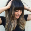 Es wird nicht empfohlen, einen Knall am häufigsten zu färben, insbesondere wenn alle Haare dunkel gefärbt sind oder der Knall selbst zu kurz oder zu lang ist. Schräge Pony müssen diagonal hervorgehoben werden, was nur ein Profi bewältigen kann. Oft wird die Hütte durch Ombre ergänzt.