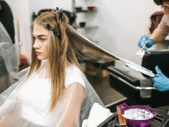 - Vor dem Färben muss das Haar nicht gewaschen oder angefeuchtet werden - der Kopf sollte trocken und schmutzig sein, da in diesem Fall Hautöl einen Schutzfilm auf der Oberfläche der Haare bildet, der den durch die Verwendung aggressiver chemischer Verbindungen verursachten Schaden erheblich verringert.