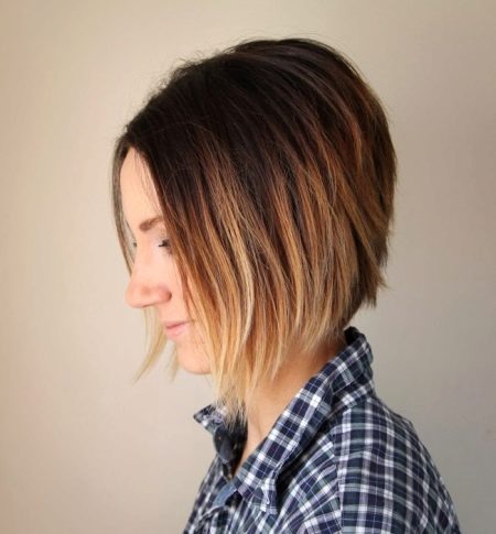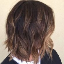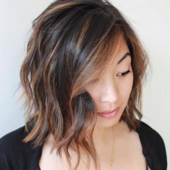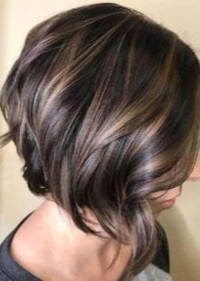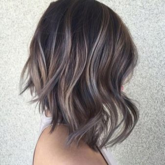 Balayazh auf dunklem Haar sieht attraktiv und unauffällig aus. Die Frisur eignet sich sowohl für junge schelmische Mädchen als auch für Frauen im Alter.