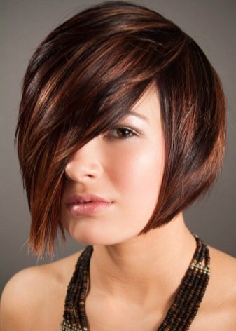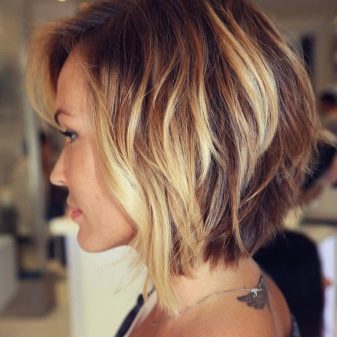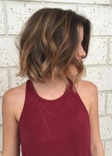 - Die Technik wird an Haaren durchgeführt, die bis zum Kinn reichen. Normalerweise werden helle oder aschige Farbtöne verwendet, um Volumen und Dichte zu verleihen. Wenn das Quadrat kürzer ist, reicht die Länge nicht aus, um den längsten Winkel zu erzielen. In diesem Fall verliert die Frisur ihren ganzen Charme und ihre Eigenschaften. Nun, wenn das Haar die Länge der Schokoladenfarbe hat, kann der Farbton beliebig sein.