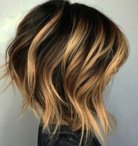 - Sie können die Stränge mit Hilfe eines vollen Balayazh in einem goldenen, hellbraunen oder beigen Farbton überlaufen und flackern lassen. Die Locken sehen natürlich aus und nur Sie wissen, dass dies das Verdienst Ihres Friseurs ist. Wenn Sie ein paar helle Farbtöne nehmen, wird es noch interessanter.
