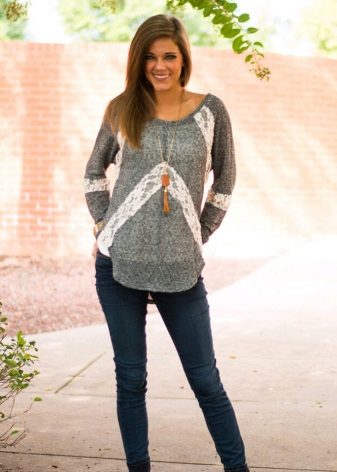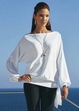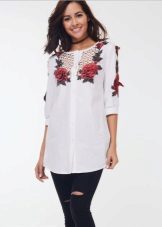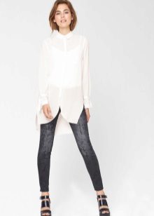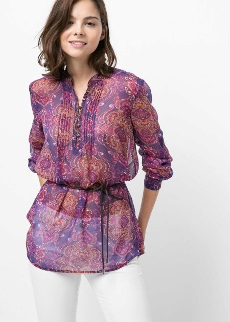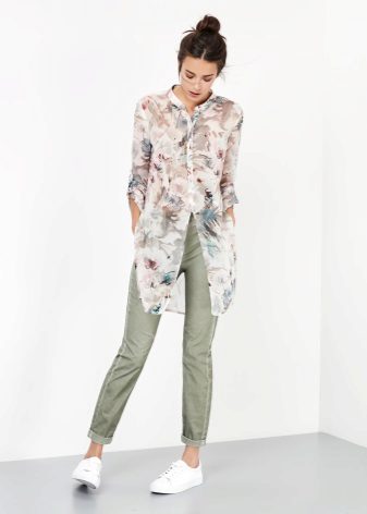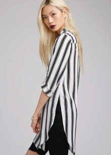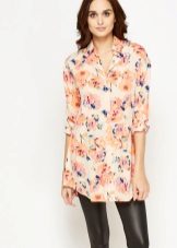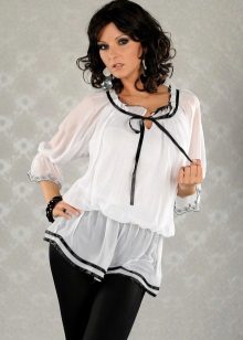 Extra lange Blusen mit einem dünnen Gürtel an den Hüften sind ein guter Teil der Garderobe, auch wenn Ihre Proportionen nicht perfekt sind. Eine solche Bluse verlängert und streckt die Figur optisch. Aus dünner Baumwolle mit Viskosezusatz genäht, passt es perfekt in den Alltagslook und bei der Wahl eines eleganteren Stoffes (Chiffon, Satin, Seide) sieht es romantisch aus.