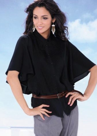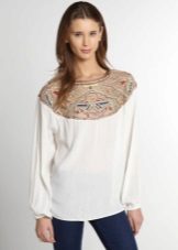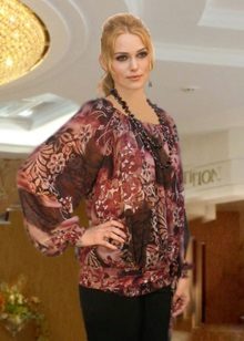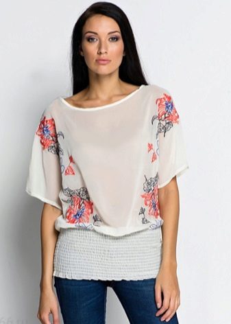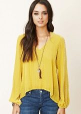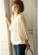 Die Idee eines Bluesons legt nahe, dass er aus dem bequemsten Stoff mit einer leicht fließenden Textur genäht werden sollte. Unter den beliebtesten Stoffen, wie sie für ein Produkt dieses Typs hergestellt wurden, können wir zuerst dünne Strickwaren, Chiffon, künstliche und natürliche Seide nennen.
