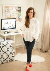 - Wenn Sie eine dreieckige Form haben, hilft Ihnen eine elegante Bluse mit „Schultern“ dabei, die Proportionen des prächtigen „Bodens“ auszugleichen.
