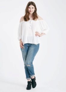 - Für eine Figur wie ein umgekehrtes Dreieck ist eine Bluse insofern gut, als Sie den Hüften mehr Volumen verleihen können, um dem Ideal näher zu kommen.