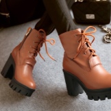 Die Schnürung, die häufig an den Stiefeletten vorhanden ist, ermöglicht es Ihnen, die Breite des Schafts anzupassen, dient auch als eine Art Dekor. Schnürsenkel können so dünn und unsichtbar wie möglich sein oder im Gegenteil hervorstechen, dick und hell.