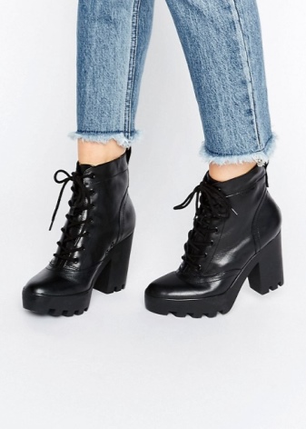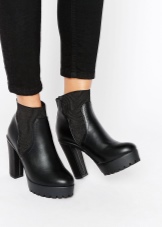 Dank dieser Sohle werden die Beine weniger müde als auf einer dünnen Haarnadel, und selbst in Zeiten rutschiger Straßen fühlen Sie sich sicherer. Für einige scheinen die dicke Ferse und die Plattform unhöflich zu sein, für andere im Gegenteil attraktiv, aber Tatsache ist, dass sie auf dem Höhepunkt ihrer Popularität stehen.