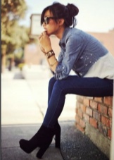 Die bequemste Option sind Jeans in verschiedenen Stilen und informelle Röhrenhosen. Im Sommer können es Shorts, Leggings, Jeggings sein. Overalls unterschiedlicher Länge sind geeignet, wenn das Bein fest sitzt. Im Allgemeinen sieht Denim zusammen mit Stiefeletten gut aus. Dies gilt für Sommerkleider, Hemden und Röcke.