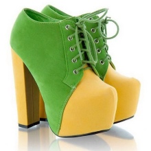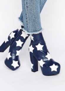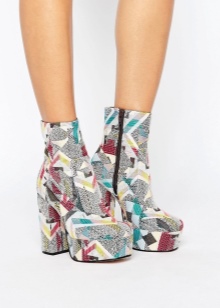 Liebhaber von Saftigkeit finden leicht leuchtende Modelle: Violett, Rot, Blau, Gelb, Blau, Pink. Oft wird eine Kombination mehrerer Farben verwendet, nicht nur monochromes Schwarz und Weiß, sondern auch Kontraste wie Lila und Gelb, Blau und Rot. Drucke auf Stiefeletten werden nicht sehr oft verwendet, aber sie sind durchaus akzeptabel, um ein noch interessanteres Design zu schaffen.