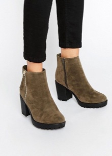 Stiefeletten sind auch insofern gut, als sie im Gegensatz zu hohen Stiefeln den Unterschenkel nicht bedecken, was bedeutet, dass die Besitzer schöner Beine damit prahlen können. Viele Frauen lieben Stilettos, weil sie das Bild eleganter machen, das ist einfach nicht alles, was für diese Art von Ferse geeignet ist. Die dicke Ferse ist ein Echo des Retrostyls, außerdem ist sie am bequemsten, weil sie stabil ist.