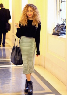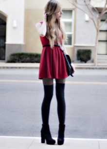 Eine maximale Länge ist möglich, wenn der Saum den oberen Teil des Schuhs bedeckt.Der Stil der Produkte mag unterschiedlich sein, aber Sie sollten sich besonders auf Casual, Romantik und sogar Business konzentrieren. Und bei Röcken und Kleidern sind Strumpfhosen und hohe Kniestrümpfe relevant, insbesondere wenn es sich um interessante Modelle mit Zeichnungen oder Mustern handelt.