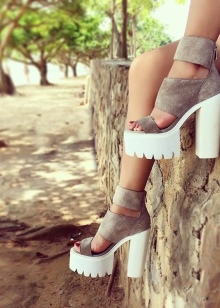 Die Plattform ist ein ausgezeichnetes Werkzeug für Schuhe mit stabilen High Heels, die viel Zentimeter Wachstum hinzufügen, aber gleichzeitig sind die Schuhe nicht mehr bequem. Es ist jedoch auch eine durchgehende Plattform in Form von Keilen möglich.