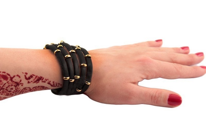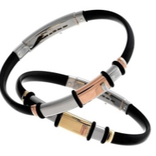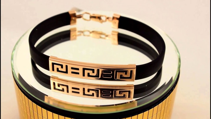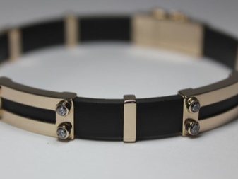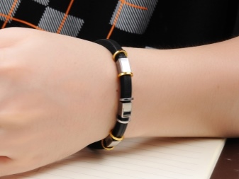 Heilendeigenschaften werden Gummischmuckarmbändern zugeschrieben. Wir sprechen von goldenen Akzenten und Natursteinen, die das Accessoire ergänzen. Zum Beispiel kann ein Edelmetall positive Energie ansammeln und verursacht keine allergischen Reaktionen.