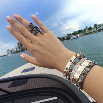 Trendige Armbänder sind perfekt für Damen mit einem mutigen und temperamentvollen Charakter. Sie können die helle Persönlichkeit ihres Besitzers betonen.