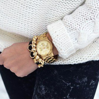 Gummiarmbänder mit goldenen Akzenten sehen auf einem Damenstift sehr beeindruckend aus. Sie betonen das anmutige Handgelenk und verleihen dem Bild subtile mysteriöse Noten. Heute werden wir dieses Originalzubehör im Detail analysieren.