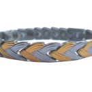 Dieses Metall ist leicht und zerbrechlich, daher wird es bei der Herstellung von Armbändern nicht in seiner reinen Form verwendet. Dieses Metall wird häufig in Legierungen mit anderen Metallen verwendet. Titan hat eine geringe Wärmeleitfähigkeit, so dass das Armband warm ist.