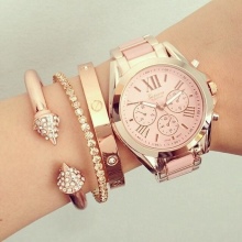 Aber für Liebhaber von Helligkeit und mutigen Entscheidungen ist ein rosa Metallarmband perfekt. Eine elegante und harmonische Kombination aus einem rosa Armband und einer rosa Uhr.