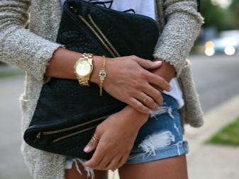 - Wenn Sie sich für eine Party oder Feier für ein langes Abendkleid mit luxuriösem Ausschnitt und bloßen Händen entscheiden, sollten Sie die Uhr aufgeben. Sie sehen mit bloßen Händen lächerlich aus. Tragen Sie lieber ein attraktives Armband. Für abendliche Looks können Sie anmutige Modelle verwenden, die mit exquisiten Anhängern verziert sind.