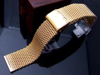 Dieses Metall ist bei der Herstellung von Bändern sehr gefragt, da es sehr einfach zu verarbeiten und auch kostengünstig ist. Messing ist Stahl in seiner Festigkeit unterlegen. Es ist anfällig für Oxidation, so dass der Gurt dunkle Flecken am Handgelenk hinterlassen kann. Um die Verschleißfestigkeit zu erhöhen, sollte eine spezielle Beschichtung verwendet werden.