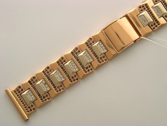 Einige Links haben eine spezielle Halterung. Sie werden verwendet, um originelle und spektakuläre Uhren herzustellen. Das letzte Glied hat Aussparungen und Ausbuchtungen, die eine große Rolle bei der Gestaltung des Zubehörs spielen.