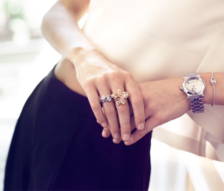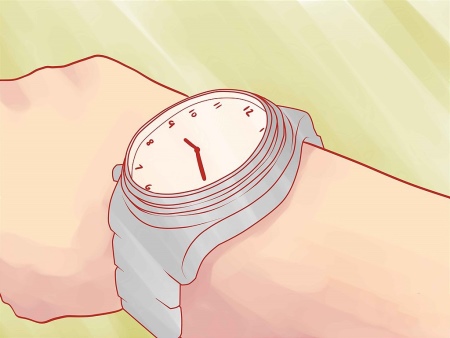 Die Uhr sollte genau auf das Armband passen. Die Manschetten einer Bluse oder Jacke sollten die Hälfte des Zifferblatts bedecken.