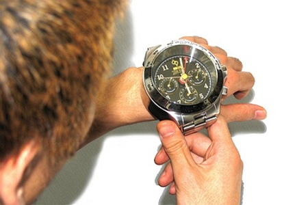 - Zuerst müssen Sie die Uhr anprobieren, Ihre Hand mit der Handfläche nach oben drehen und die Glieder sammeln, um die gewünschte Länge zu erhalten. Sie müssen miteinander in Kontakt stehen. Es ist ratsam, eine eindeutige Anzahl von Links zu entfernen, einen auf jeder Seite. Dadurch wird die Position des Verschlusses in der Mitte des Armbands gespeichert.