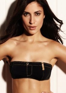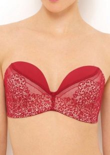 Bandeau Bras - Dies ist ein Stoffstreifen, der mit beliebigen dekorativen Elementen in zwei Tassen geteilt wird. Es gibt verschiedene Arten von Bando: starr mit Cups, ein einfacher Stoffstreifen in Form eines Oberteils, glatte Modelle, mit Vorhängen, Spitze, ohne Push-up oder damit.