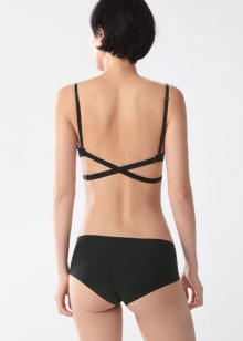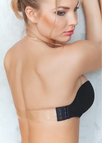 Ein solcher BH fällt noch weniger auf, wenn die Träger und die Rückenbrücke aus Silikon bestehen. Dieses Modell ist ideal für einen offenen Rücken: Ein BH kann auch unter einem transparenten oder durchscheinenden Abendkleid, einem Outfit mit nackten Schultern oder einem nackten Ausschnitt und einem tiefen Ausschnitt auf dem Rücken getragen werden.