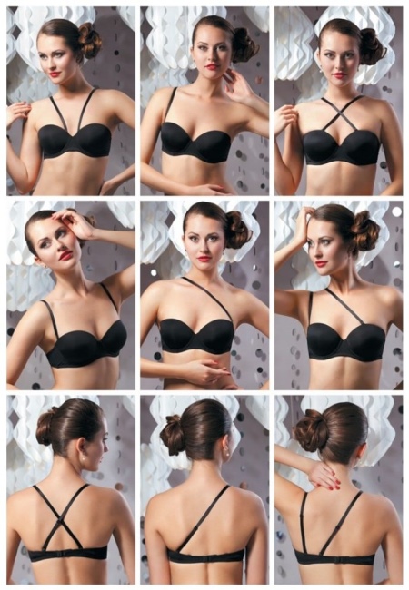 Sie können verschiedene Optionen zum Befestigen von Gurten anhand der Anweisungen oder Ihrer Vorstellungskraft ausprobieren. Und Sie können solche Unterwäsche von vielen Herstellern kaufen, zum Beispiel von Intimissimi, Wonderbra, Milavitsa und anderen Marken.