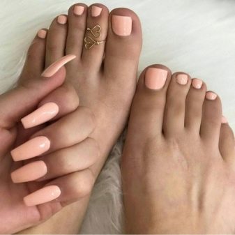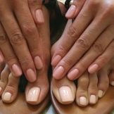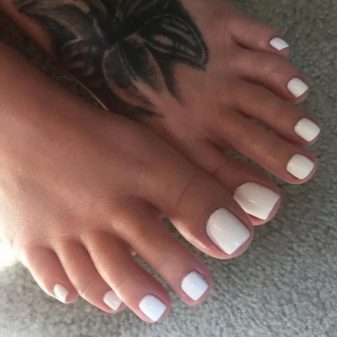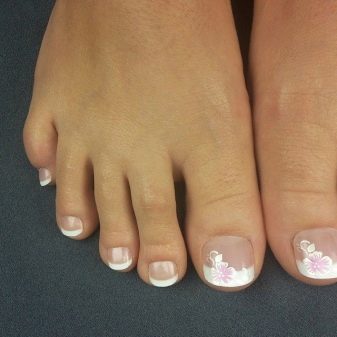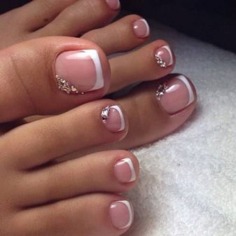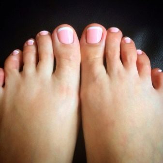 Französisch wird heute von vielen Damen gewählt. Sie lieben es, es sowohl an Händen als auch an Füßen zu verwenden. Diese Pediküre betont die Weiblichkeit seiner Geliebten. Er passt erfolgreich zum Geschäftsstil und für einen entspannten Spaziergang mit Freunden.