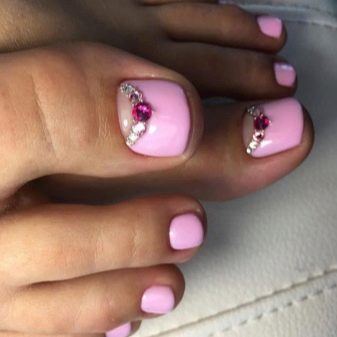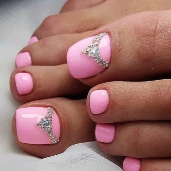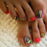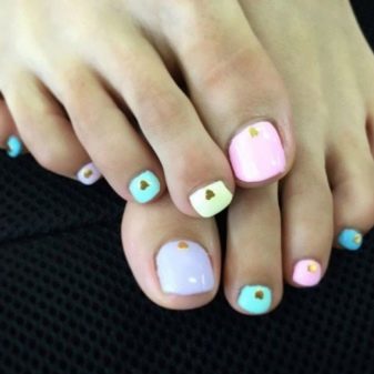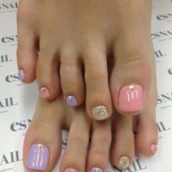 Eine solche Pediküre ist eine gute Wahl für den Sommer. Hier sehen Sie die Fülle an Mustern, Bildern, Zeichnungen, Farbverläufen, Glitzern und Strasssteinen. Die Hauptsache ist, es nicht zu übertreiben, dem gewählten Stil zu folgen und die Tonalität und Farbe von Kleidung oder Schuhen organisch zu kombinieren. Es ist erwähnenswert, dass farbiger Lack auf kurzen Nägeln gut aussieht.