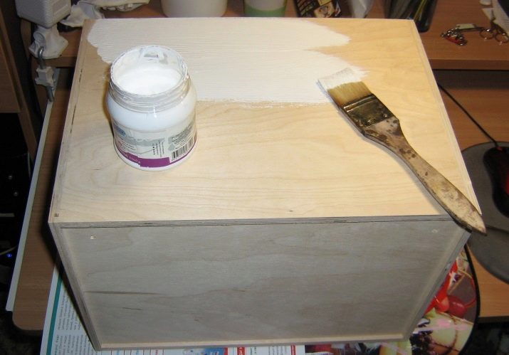 Der erste Schritt besteht darin, eine Holzoberfläche vorzubereiten, beispielsweise eine Kommode. Dazu muss es vollständig geschliffen werden, um alle vorhandenen Unebenheiten zu entfernen. Anschließend wird mit einem Pinsel eine spezielle Acrylgrundierung auf die Beschichtung aufgetragen. Während die Acrylgrundierung aushärtet, können Sie Papierfragmente aufnehmen.