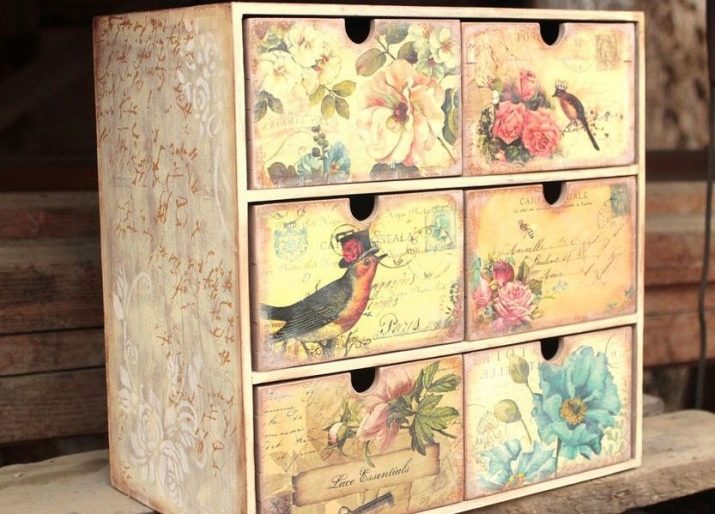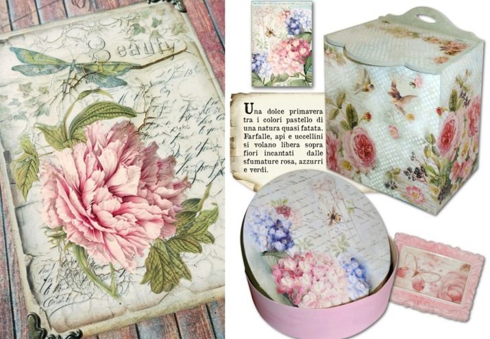 Solch ein spezielles Material kann gekauft werden, um eine Depoupage im Retro-, Antik- oder Vintage-Stil herzustellen. Eine große Auswahl an verschiedenen Farben und allerlei schönen Motiven ermöglicht es Ihnen, die richtige Option zu wählen, die Ihren Wünschen und Vorlieben entspricht.