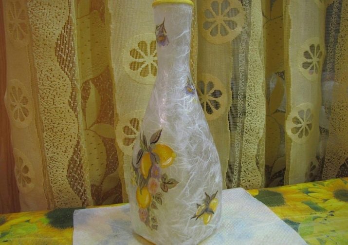 Es ist jedoch ratsam, sich mit der Decoupage-Technik vertraut zu machen, indem verschiedene Flaschen mit ungewöhnlicher Form dekoriert werden.