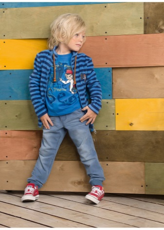Viele Modelle haben originale geometrische Drucke, Klettnieten und kontrastierende Streifen an den Seiten. Jungen werden in Trainingsanzügen, die zu den Farben von Turnschuhen passen, großartig aussehen. Einige Modelle können mit Shorts, Bermudas und leichten Sommerhemden und T-Shirts kombiniert werden.