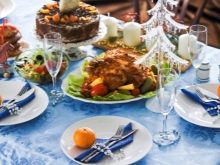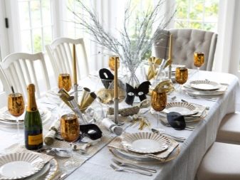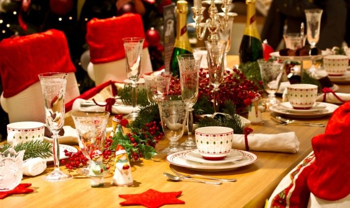 Neujahr oder Weihnachten, hauptsächlich im Familienkreis gefeiert. In diesem Fall können Sie die strikte Kürze und Zurückhaltung des Dekors verwerfen. Die Tischdecke kann in leuchtenden Farben mit Weihnachtsmotiven sein.