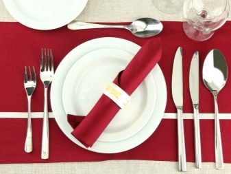 Dann wird Besteck auf die Teller gelegt. Es ist besser, aus Edelstahl zu verwenden. Bei der Auswahl sollten Sie auf die Liste der am Tisch erwarteten Gerichte achten und nur die verwenden, die die Gäste wirklich benötigen.