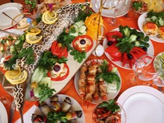 Wenn Sie Probleme mit dem Design haben, erstellen Sie zunächst ein Skizze-Diagramm, auf dem die Anordnung der Geräte und Dekorelemente angezeigt wird.Bestimmen Sie auch die Liste der Produkte, die zum Kochen verwendet werden. Nach sorgfältiger Vorbereitung können Sie Ihre Gäste nicht nur köstlich für ein Jubiläum oder einen anderen Feiertag füttern, sondern Sie auch mit einem wunderschönen Dekor überraschen, das von Ihren eigenen Händen kreiert wurde.